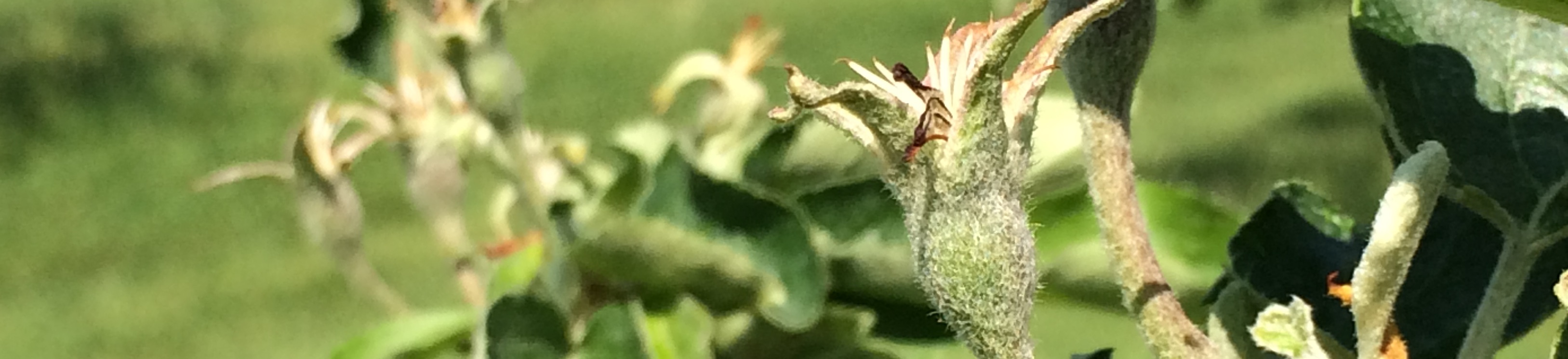 Les captures d’hoplocampes sont maintenant terminées dans la plupart des régions. En Montérégie et dans la région de Missisquoi, on rapporte seulement quelques vergers ayant atteint le seuil de traitement alors que dans la région des Laurentides et du sud-ouest, la plupart des producteurs ont du intervenir contre cet insecte. En Estrie où les populations sont importantes, un nombre élevé de captures a été observé dans la dernière semaine et pratiquement tous les vergers ont atteint le seuil d’intervention. Les premiers dégâts primaires ont été observés dans des vergers du sud-ouest de Montréal et de la Montérégie.